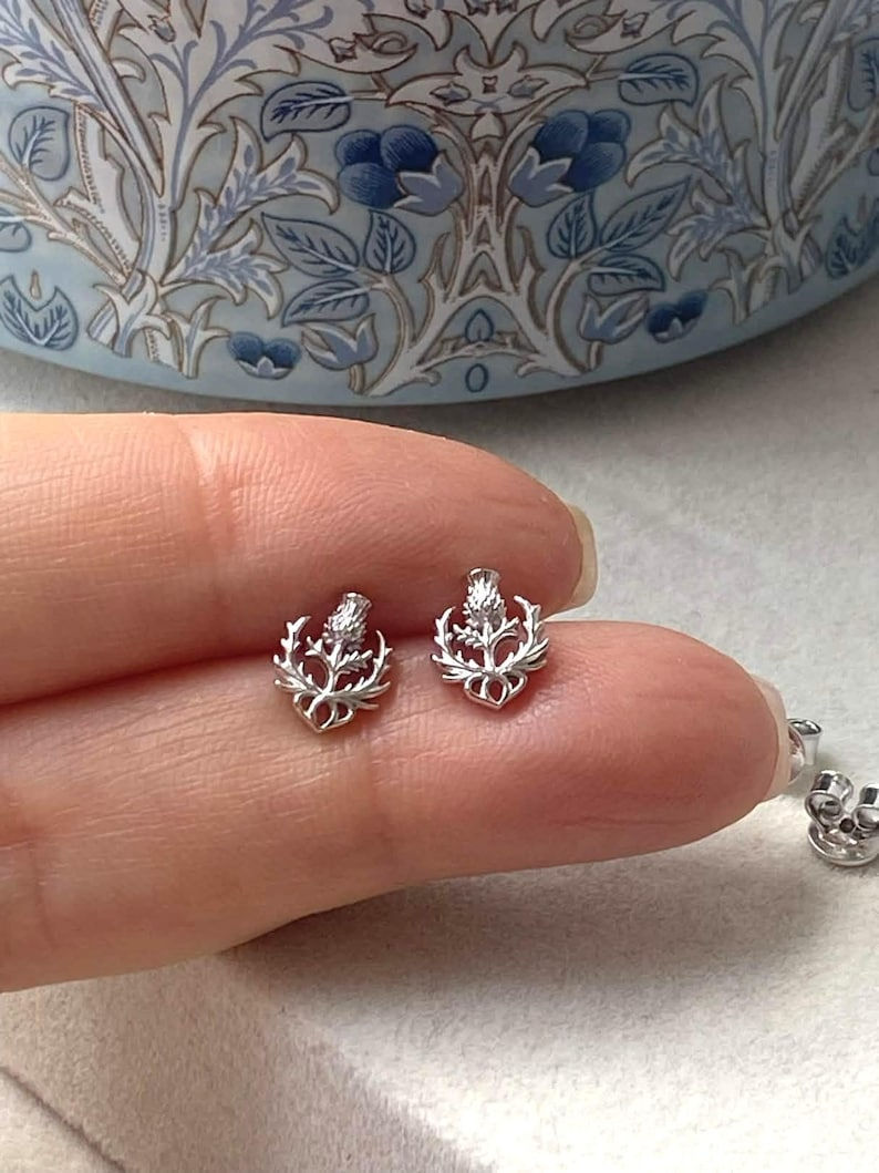 Tiny Sterling Silver Scottish Thistle Stud Earrings